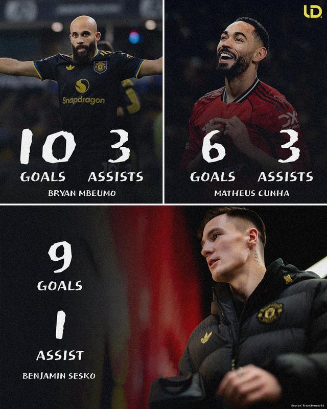 本賽季曼聯全新組建的“詹庫科”鋒線組合展現出穩定火力,據數據統計,截至目前,三人在各項賽事31場比賽中,合計貢獻32粒進球與助攻,進攻效率可觀。